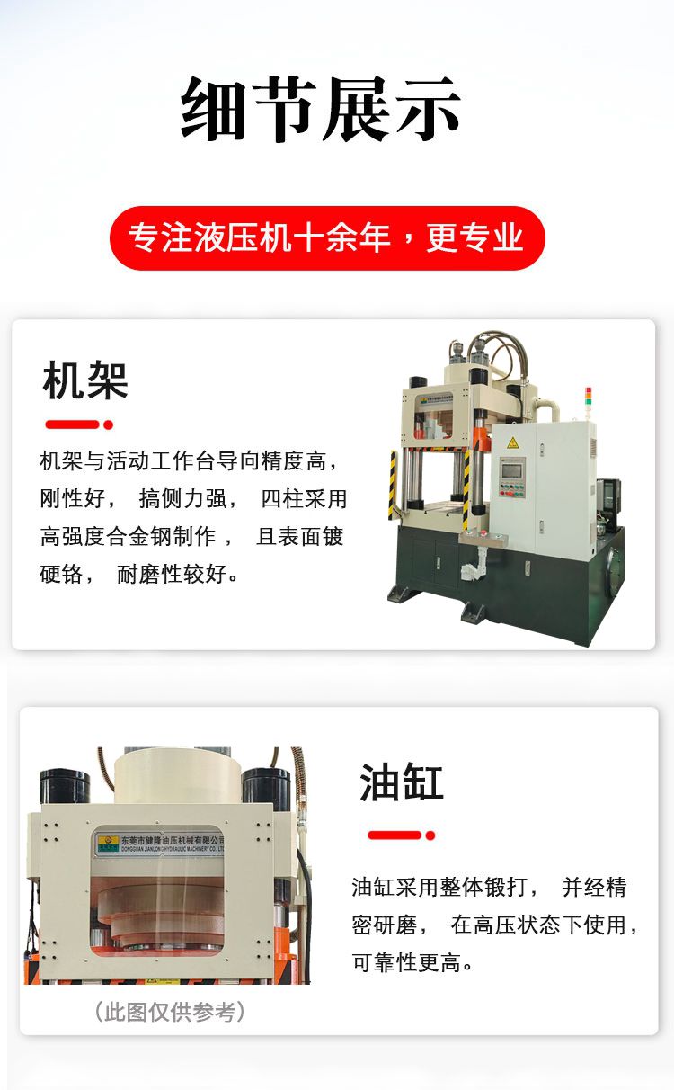 适用于五金、电子产品冲切、铆合、成型、复合材料类和离型材料冲切、冲压、冲孔压印等工艺;2、金属或非金属零件的压印、成型、浅拉深、整形、覆模及切边等